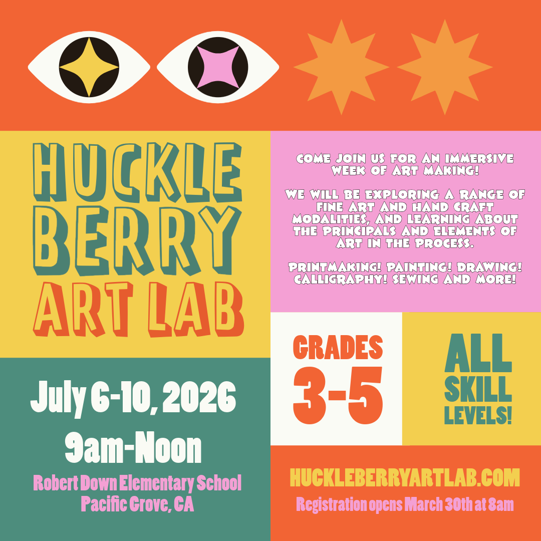 Nestled on the coastline of the Monterey Peninsula, Huckleberry Art Lab offers fine art and hand-craft classes. Endlessly inspired by the beautiful world around us, much of our curriculum explores the flora, fauna and ecosystems of this place we call home!
